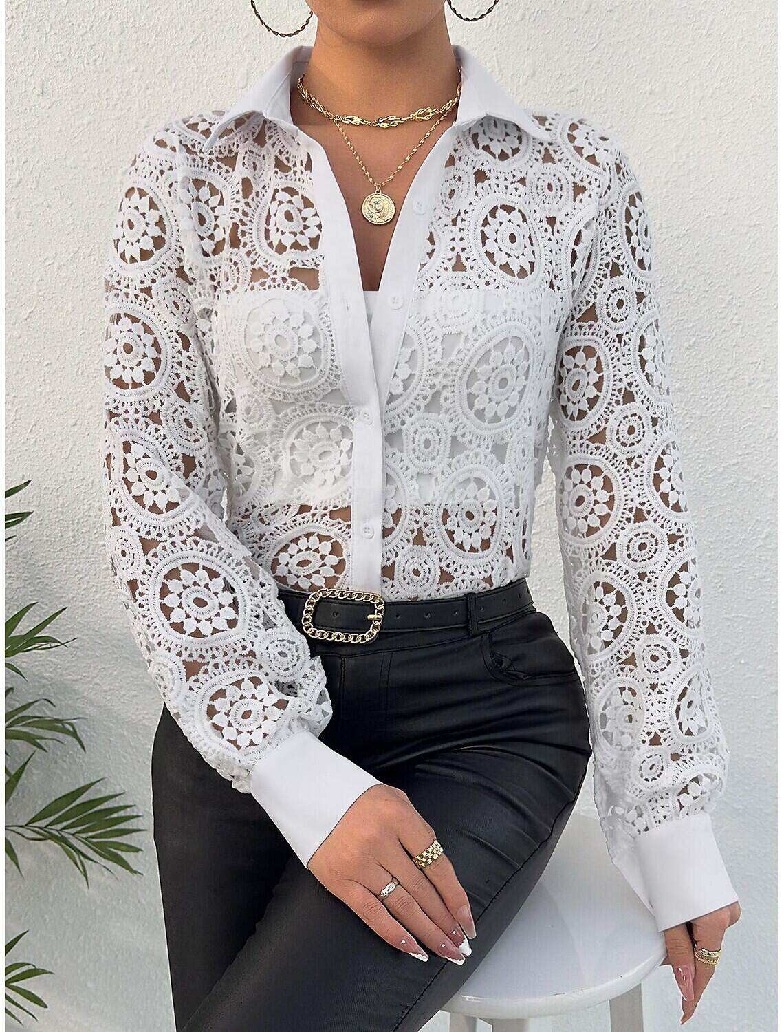[Occasions] Ideal for streetwear and daily fashion, this white lace blouse effortlessly enhances any outfit. Whether paired with jeans for a casual day out or a skirt for a more formal setting, it adds a sophisticated touch to every look.