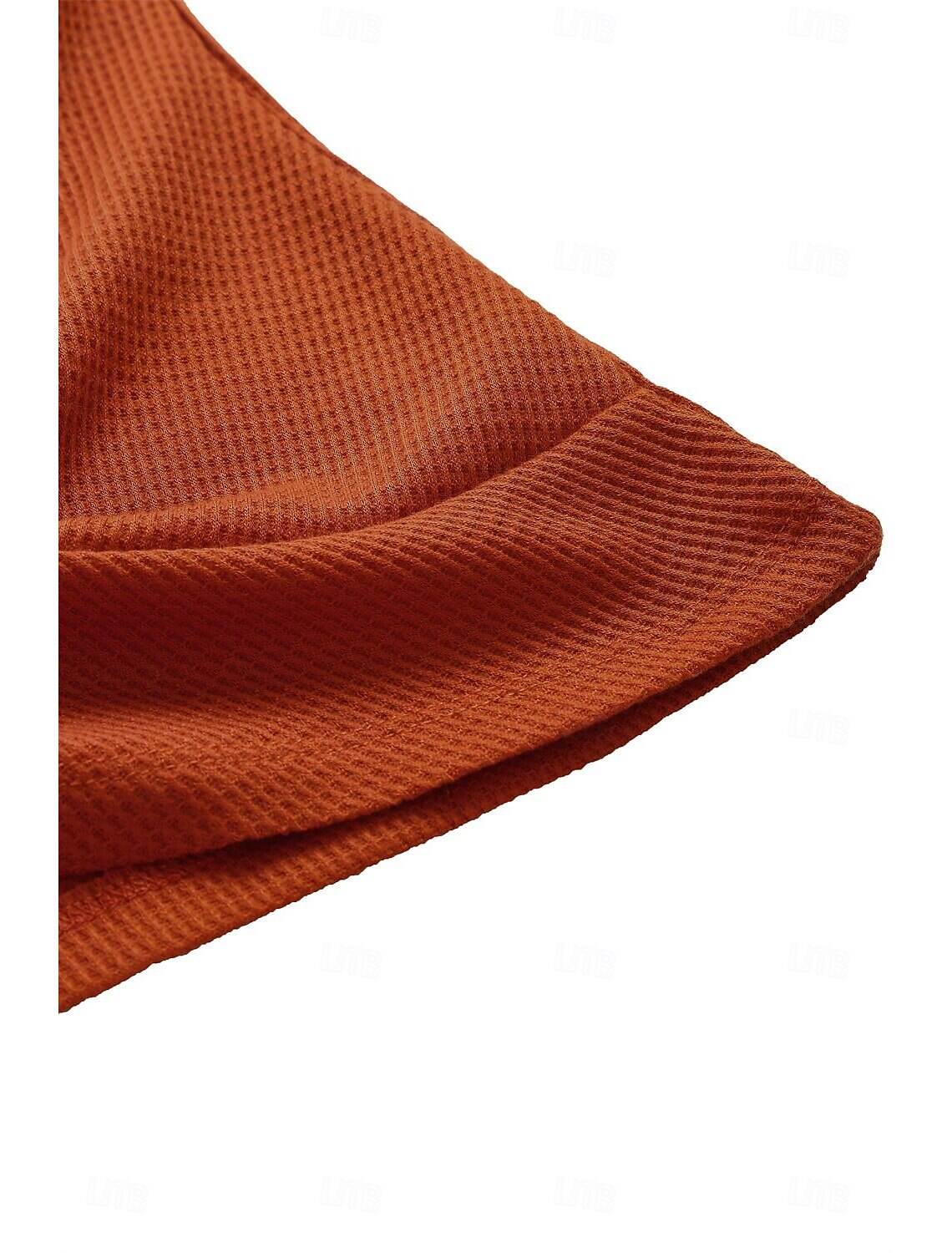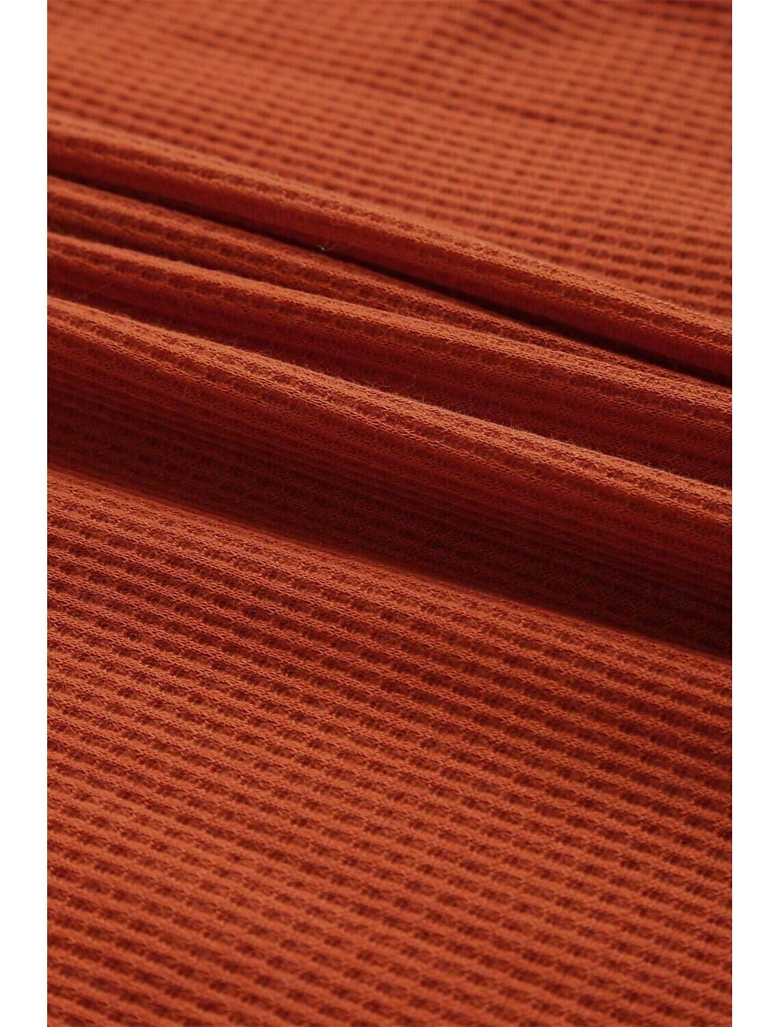 [Fabric]: This women's top is crafted from high-quality waffle-knit fabric, offering a soft and cozy texture that's ideal for warm weather. The material provides a comfortable, breathable feel that ensures lasting comfort throughout the day.