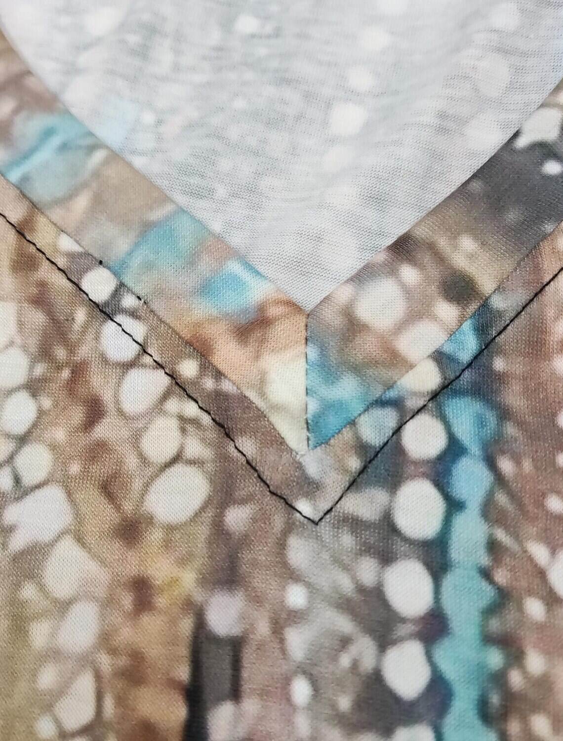 [Design Highlights]: This tank top features a chic V-neckline and a striking floral and ethnic print, enhanced by button details that add a unique touch to its style. The combination of earthy tones like blue, light green, and khaki, along with subtle sequin or metallic details, offers a hint of shimmer and sophistication to the overall look.