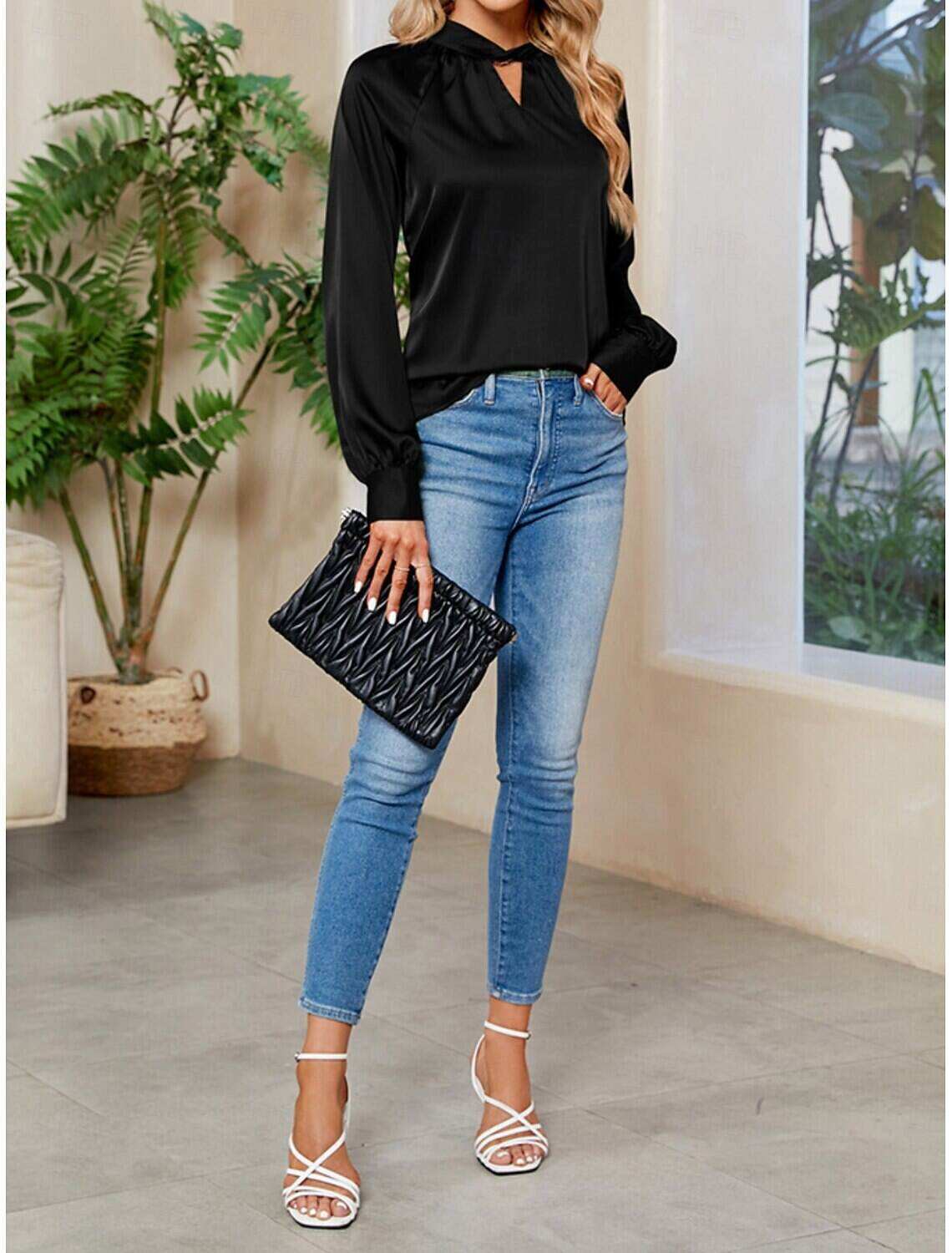 [Occasions] Perfect for parties and work events, this versatile blouse enhances your wardrobe with its timeless design. Whether paired with jeans for a casual outing or tailored pants for a formal setting, it adapts to many occasions seamlessly.